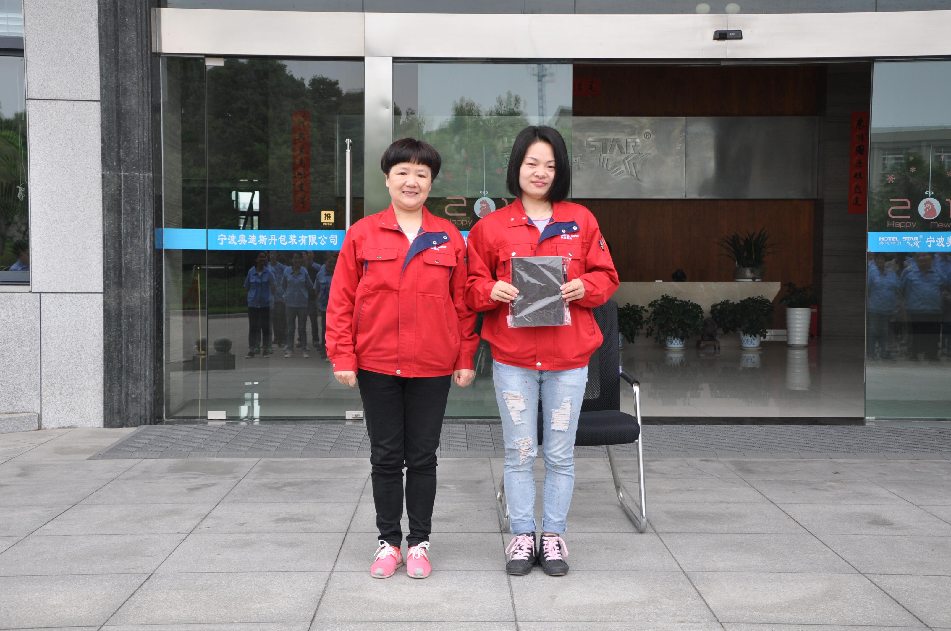 寧波奧迪斯丹包裝有限公司自從2008年開始就成為福利企業(yè)。福利員工在公司里已經(jīng)有100多個人,大家的工作積極性、進(jìn)取心、自尊心和自信心都非常強(qiáng)。這次5月15號的早會上,我們又迎來了一對福利師徒的誕生。