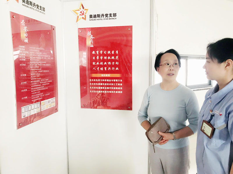 浙江奧迪斯丹紙業(yè)有限公司是奉化區(qū)首批“雙共工程”試點(diǎn)單位,是江口街道黨建示范基地。公司黨支部書記戴鳳娥、黨支部副書記寇金玉緊跟上級(jí)黨委工作部署,不斷創(chuàng)新思路,積極組織全體黨員開展各項(xiàng)黨的教育實(shí)踐活動(dòng),組織黨員簽訂《廉潔自律承諾書》,積極探索黨組織和黨員發(fā)揮作用的方式和渠道,開設(shè)黨支部談心室、分發(fā)政治生日卡、成立工會(huì)心靈開鎖組、成立激勵(lì)互助基金,將黨建工作滲透到各項(xiàng)工作中。