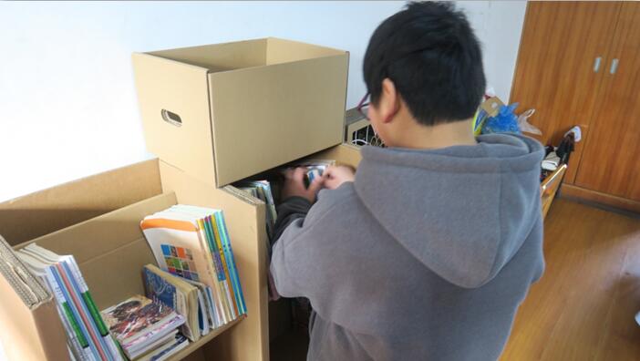 許多孩子都坐在房間里面,他們看到我們的到來很開心,有的還在向我們招手。接著我們拿著公司自己設(shè)計(jì)的紙書柜、紙質(zhì)收納盒以及紙質(zhì)工藝品送進(jìn)了孩子們的寢室。