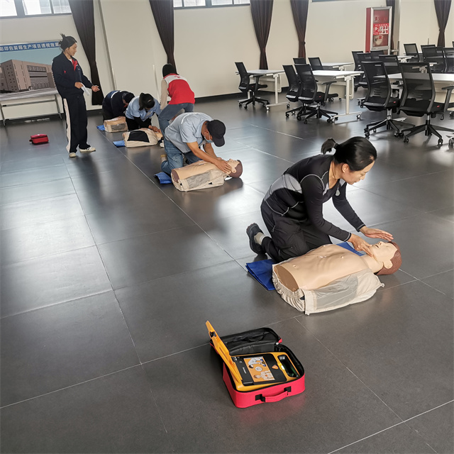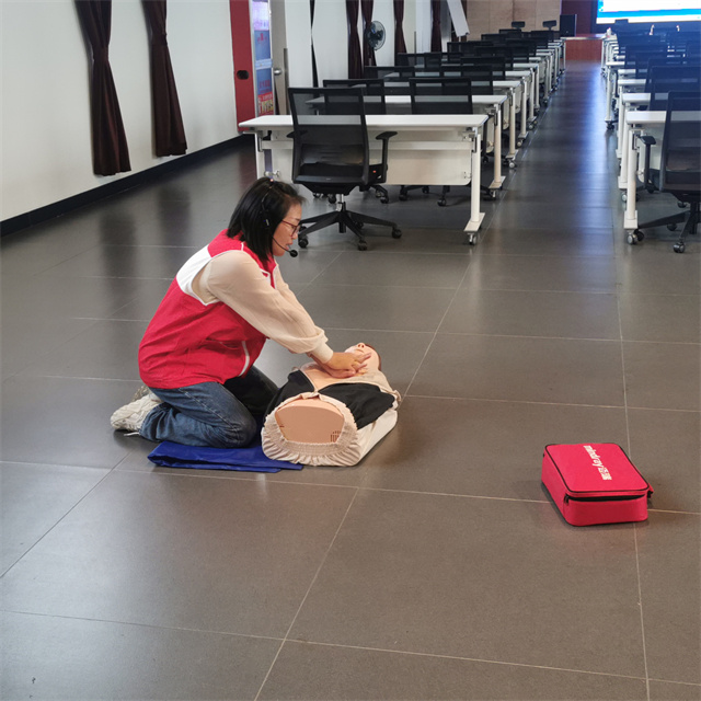 培訓過程中,丁老師通過劃分急救小組,開展模擬急救演練等方式,讓學員鞏固所學的應(yīng)急知識點,學員們兩人一組,反復演練每個動作要領(lǐng)、模擬的認真而投入,直到每一位學員基本掌握了胸外按壓、人工呼吸等日常救護知識。丁老師還重點講解了在實際救援中,如何抓住最有效的“黃金四分鐘”時間,去挽救一個個鮮活生命面臨危險的人。
