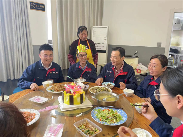 “要說這個(gè)燒飯阿姨(王玲娥)啊老好了,這次疫情期間,她主動(dòng)從家里趕到廠里給大伙燒飯,每天還要跑到卡口點(diǎn)去拿菜,凌晨4、5點(diǎn)就起床給大伙做早餐,有粥、炒米粉、還煮了面條,老豐盛了,讓大伙吃好吃飽才有力量服務(wù)用戶不是?她這個(gè)人整天樂呵呵的,吃著她做的飯菜也香,特別在疫情期間,大伙都被她的這種樂觀態(tài)度所感染,工作起來也很輕松!”李大姐說話很帶勁,路過的員工有的向我們微笑、有的豎起了大拇指!